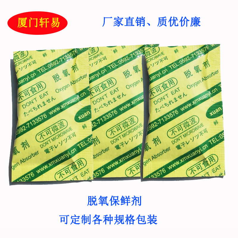 2)使用脫氧劑不易導(dǎo)致食品安全問題。脫氧劑與食品防腐劑不同,沒有副作用,不含致癌物質(zhì),食品保鮮安全。脫氧劑的原料具有反應(yīng)穩(wěn)定、無怪味、不產(chǎn)生有害氣體等優(yōu)點,萬一誤食對人體也無害。